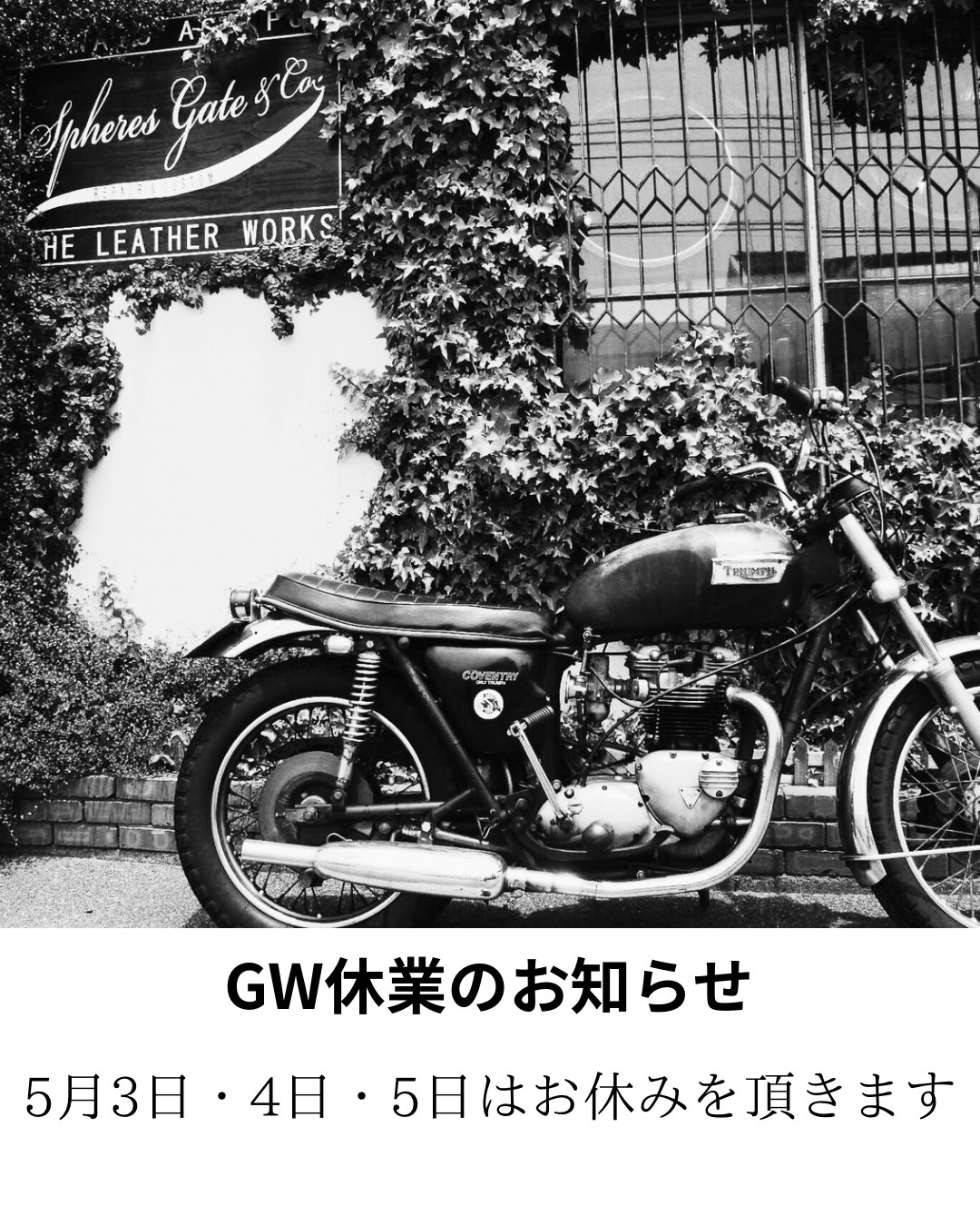 ゴールデンウィークの営業について 皆様こんにちは。毎度ご利用頂き有難うございます。 気がつけばもう連休が近づいてきてました。 毎年連休中も大体開けていたのですが、 今年は5月3日・4日・5日の3日間をお休みさせて頂きます。 その他は通常通りの営業となります。 ご来店を予定していたお客様には大変ご迷惑をおかけいたし ますが何卒ご容赦ください。 連休の方も、そうでなくお仕事で全然ゴールデンじゃない方も 皆様にとって良い日が過ごせますように。 投稿ナビゲーション Previous post Un caffe per favore エスプレッソのあれこれNext post 京都オーダー会6月7日(土)8日(日)